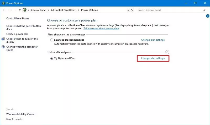 في النافذة التالية، حدد خيار "تغيير إعدادات الطاقة المتقدمة".