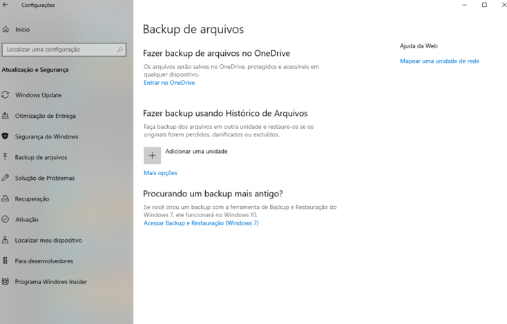 Se você ainda não configurou o backup, ative Backup automático dos meus arquivos usando o OneDrive ou um disco rígido externo.