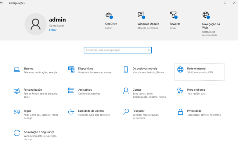 A primeira coisa a fazer é abrir o Configurações do seu PC (pressione Windows + I) e Clique em "Atualização e Segurança".