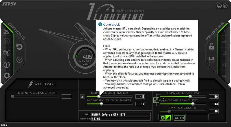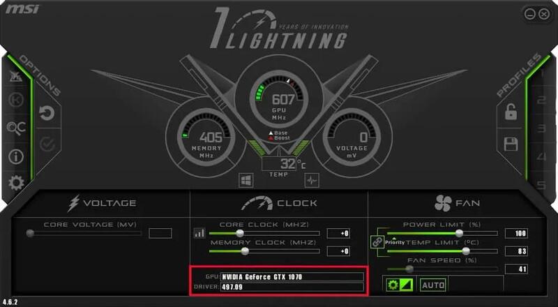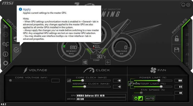 Open the MSI Afterburner program once it is set in place. See if your graphics card is identified, the you can adjust the desired settings.