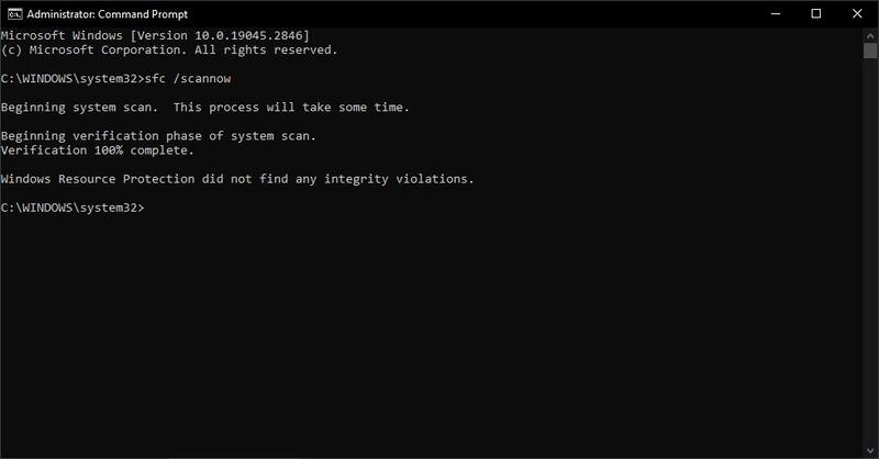 Should the tool identify any corrupted or absent system files, it will try to automatically fix them. Close the Command Prompt window when the scan and repair cycle finishes.