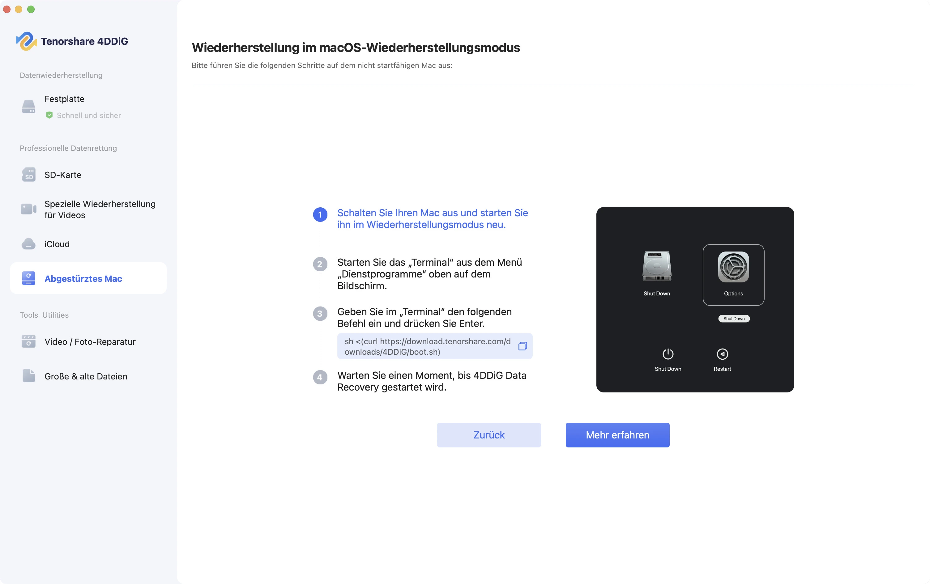 Schritt 1:„macOS-Wiederherstellungsmodus“ auswählen