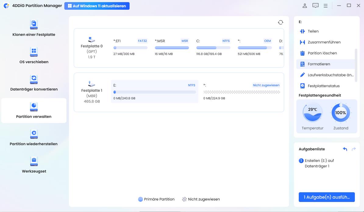Lösung 1: Die effektivste Methode – 4DDiG Partition Manager (Empfohlen)