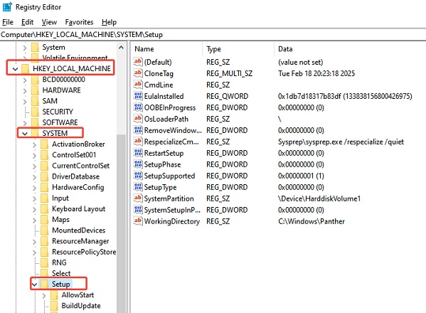 Navigieren Sie zu: HKEY_LOCAL_MACHINE\SYSTEM\Setup
