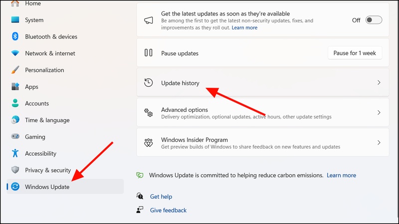 Drücken Sie Windows + I, um die Einstellungen zu öffnen, und navigieren Sie dann zu „Windows Update" > „Updateverlauf" > „Updates deinstallieren".