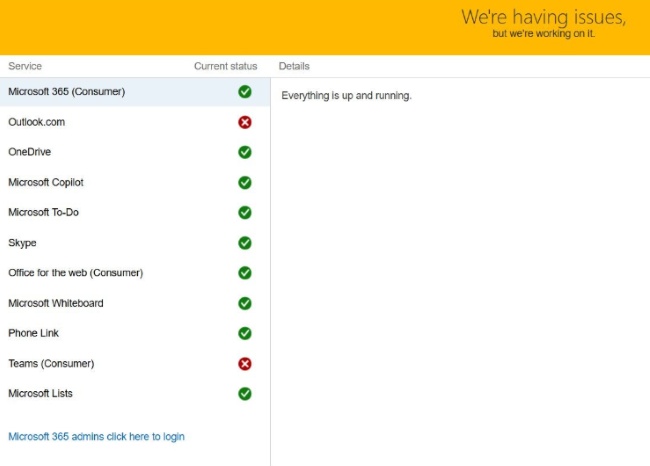 Sometimes the problem is not your device or account at all. Outlook depends on Microsoft servers, and when those services experience outages, inboxes may stop updating. This can make it appear that the Outlook mailbox is not receiving emails, even though everything is configured correctly. You can check Outlook service status in three ways:
