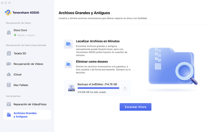 Es posible que su Mac tenga archivos grandes y desactualizados que ya no se necesitan. Eliminarlos ayuda a liberar espacio en el SSD o HDD y mejorar el rendimiento. 4DDiG Mac puede ayudarle a localizar y eliminar archivos innecesarios en minutos.