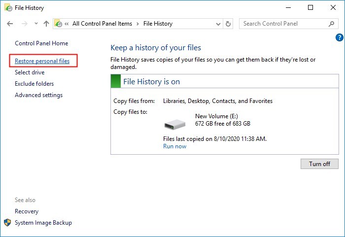 Fix 9: Recover Corrupted CR2 Files from Windows File History