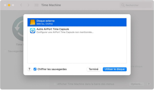 Connectez le disque dur Time Machine à votre Mac.