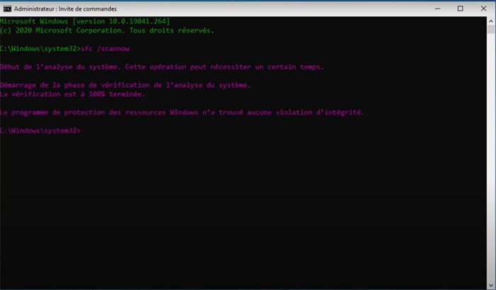 Tapez sfc /scannow et appuyez sur Entrée.