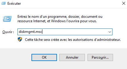 Ouvrez la Gestion des disques (Windows + R, puis diskmgmt.msc).