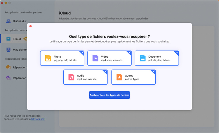 Sélectionnez les fichiers souhaités et cliquez sur " Récupérer ". Enregistrez les fichiers dans un emplacement sécurisé sur votre Mac ou un disque externe.