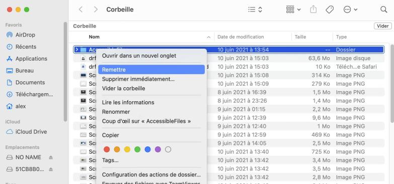 Il est possible que vos fichiers manquants soient déplacés dans le dossier Corbeille. Ne vous inquiétez pas, vous pouvez facilement les restaurer. Voici comment procéder:
