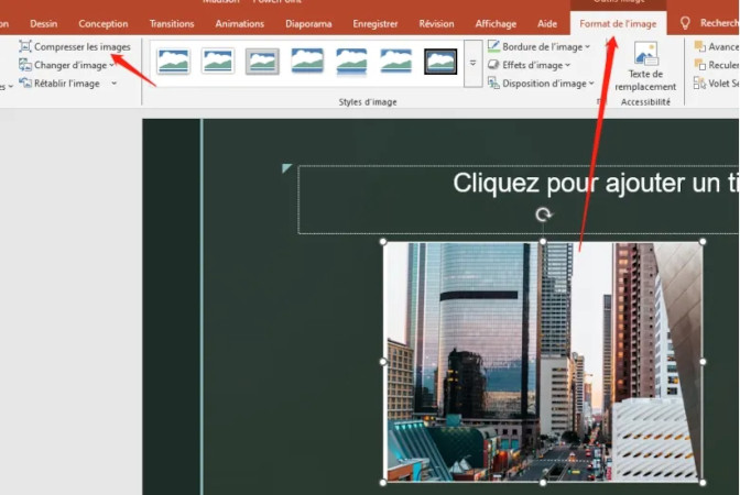 Les images sont souvent le principal contributeur à la taille d'un fichier PowerPoint volumineux. En optimisant les images, vous pouvez compresser considérablement un fichier PPT tout en conservant la clarté visuelle. PowerPoint propose un outil de compression intégré pour réduire la taille de l'image sans sacrifier la qualité. Voici comment procéder :