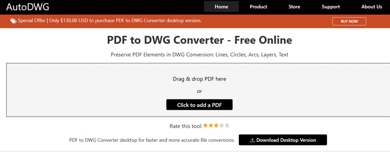 WorkinTool PDF to DWG Online: Interface claire, conversion en quelques clics, utile pour un besoin ponctuel.