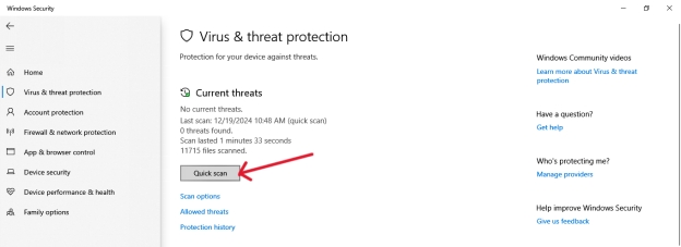 Sélectionner Analyse rapide ou Analyse complète (pour une vérification plus approfondie) et cliquez sur Scannez maintenant.