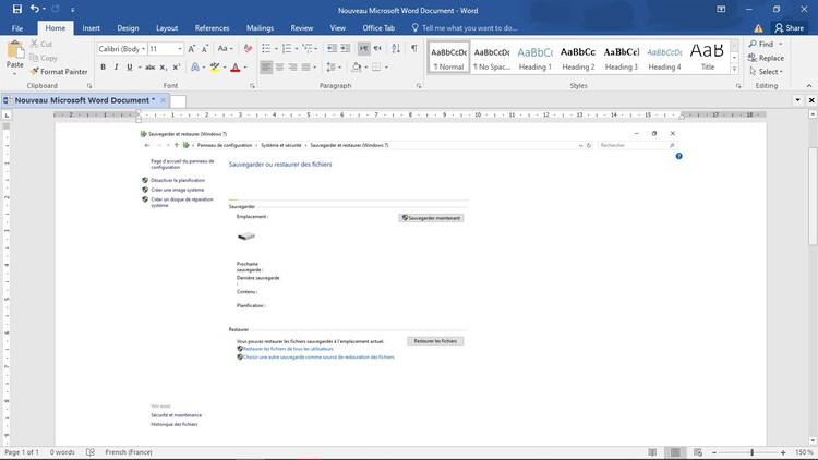 Sélectionnez "Panneau de configuration", puis "Système et sécurité" et cliquez sur "Sauvegarder et restaurer".