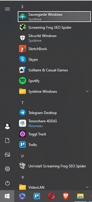 Cliquez sur le bouton Démarrer et ouvrez "Sauvegarde Windows".
