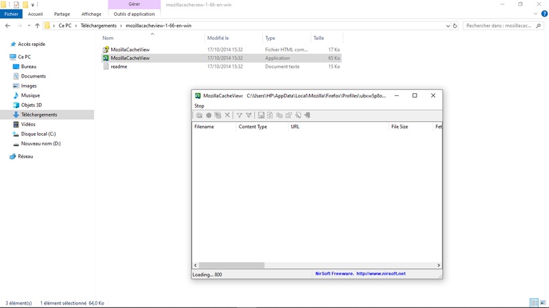 Téléchargez et installez MozillaCacheView depuis le site de NirSoft.