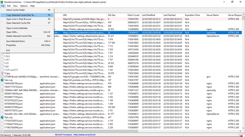 MozillaCacheView est un outil gratuit qui permet de visualiser et d'extraire les fichiers du cache de Firefox.