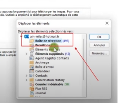 Choisissez Autre dossier > Boîte de réception dans les options de la fenêtre Déplacer.