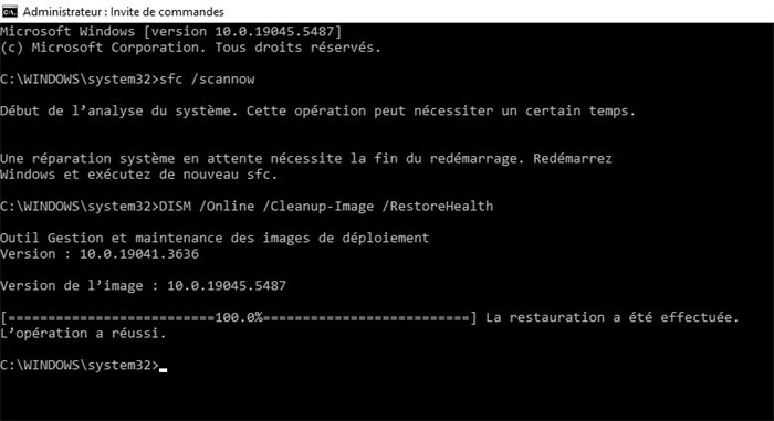 Solution 6 : Vérifier les fichiers système via SFC et DISM