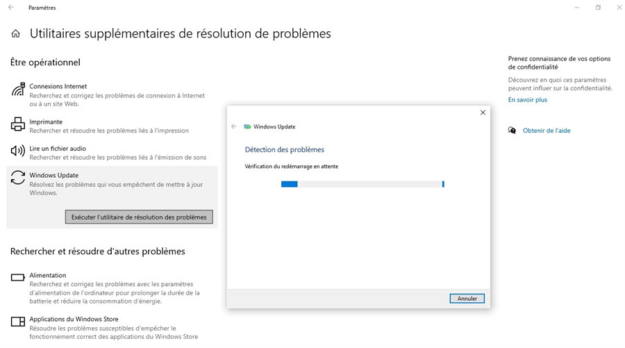 Solution 7 : Utiliser l'outil de Résolution des Problèmes Windows Update
