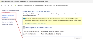 Méthode 5. Récupérer les fichiers supprimés à partir de l'historique des fichiers