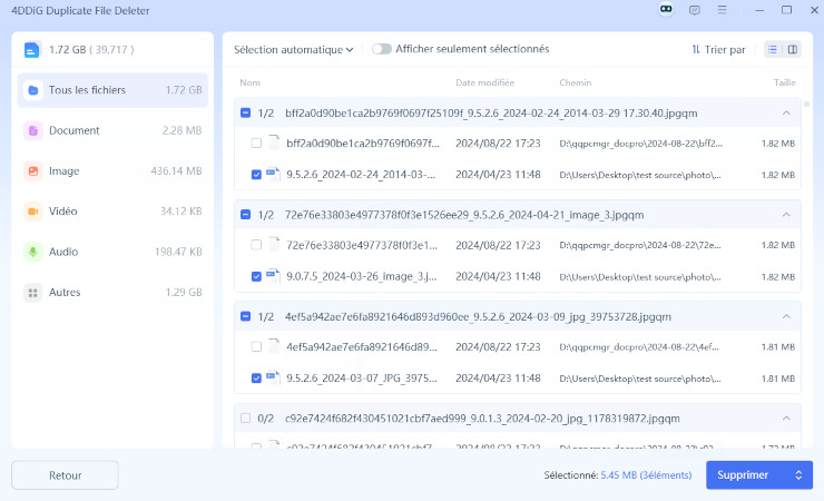 Supprimer les doublons: Après la numérisation, cliquez sur Supprimer en un clic pour automatiquement supprimer les fichiers indésirables.