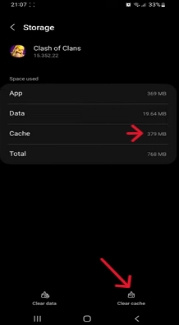 Choisissez Effacer le cache pour supprimer les fichiers temporaires stockés par les applications afin d'accélérer les opérations.