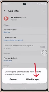 Ensuite, appuyez sur Désactiver l'application pour confirmer la désactivation.
