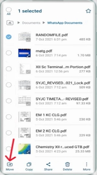 Appuyez sur le bouton Déplacer. Accédez au dossier de la carte SD comme destination dans le gestionnaire de fichiers.