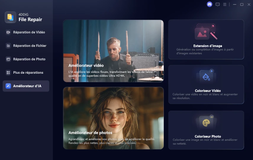4DDiG AI Video Enhancer est votre solution tout-en-un pour améliorer la qualité des vidéos. Que vous ayez besoin d'éclaircir des vidéos, d'augmenter la résolution vidéo, d'accentuer les détails vidéo ou de restaurer de vieux films, cet outil permet à vos vidéos d'avoir un aspect optimal en toute simplicité.