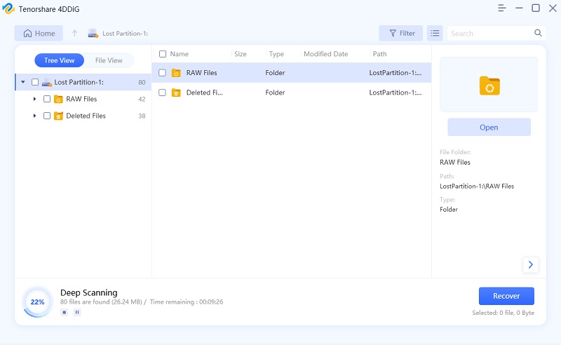 Then 4DDiG will perform a deep scan of your hard drive. You can pause or stop the scan at any time if you locate the data you want to recover. When the scanning process is done, you can preview the recoverable files to ensure they are the ones you want to restore.