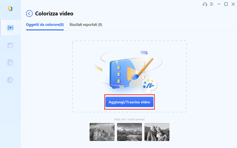 Importa uno o più video in bianco e nero che desideri colorare facendo clic sul pulsante [Aggiungi/Trascina video] o utilizzando la funzione di trascinamento.