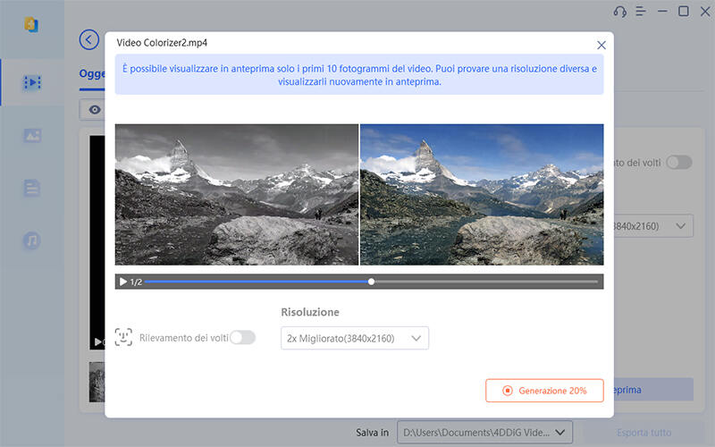 4DDiG File Repair inizierà automaticamente a colorare il tuo video in bianco e nero e ti fornirà un'anteprima dei primi 10 fotogrammi del video colorato. Se non sei soddisfatto, puoi regolare la risoluzione del video in qualsiasi momento e ripetere il processo di colorazione.