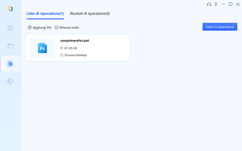 Dopo aver aggiunto i file Adobe danneggiati, fare clic sul pulsante "Inizia la Riparazione" per avviare il processo di riparazione. Il software analizzerà i file, rileverà eventuali errori o corruzioni e applicherà tecniche avanzate per riparare e recuperare i dati.