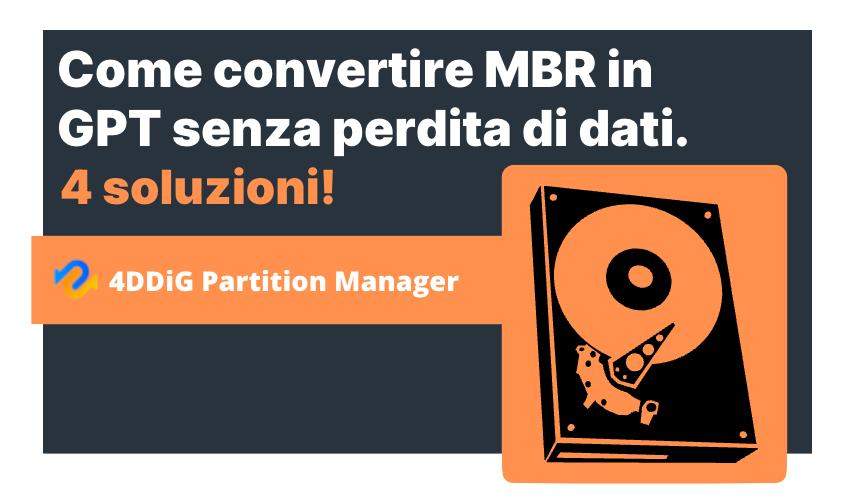 Soluzione 1. Convertire da MBR a GPT senza perdita di dati con 4DDiG Partition Manager.