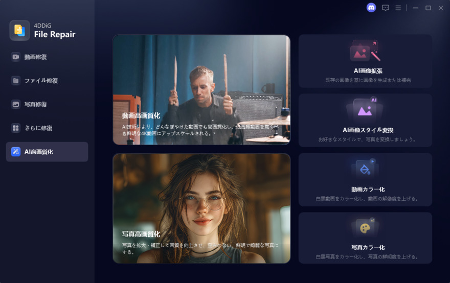 画像のクオリティや仕上がりを重視する場合は、AIによるスタイル変換ができるツールが有効です。4DDiG File Repairを活用すれば、元画像を活かしながら高品質なミーム画像を短時間で生成できます。