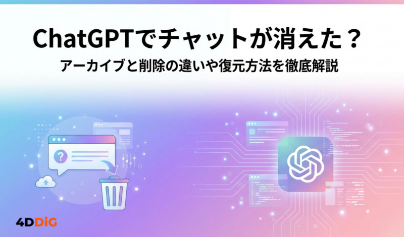 しかし、誤って完全に削除してしまった場合、ChatGPTの標準機能だけでは復元が困難です。大切なデータを失わないためにも、日頃からバックアップを意識し、万が一の際はTenorshare 4DDiGのような信頼性の高い復元ソフトの活用を検討してみてください。