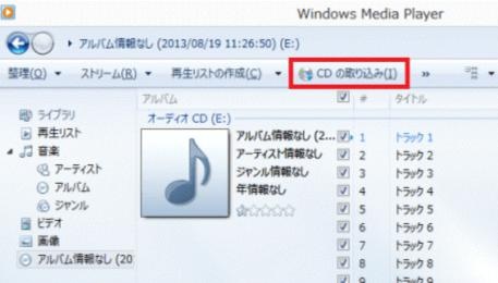 音楽CDをドライブに挿入して曲情報を読み込ませる