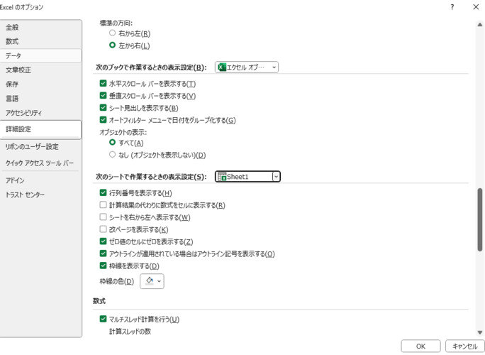 原因3:Excelの設定で「オブジェクトの表示」が「なし」になっている