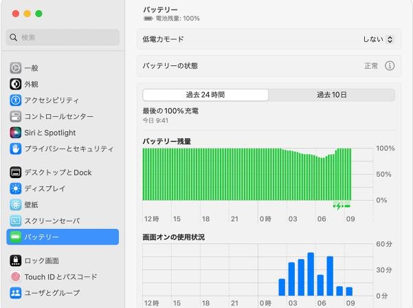 このようなときは、MacのNVRAM リセットやSMCリセットを試すと改善することがあります。システム環境設定の「バッテリー」からの機能を確認し、設定を調整してみましょう。