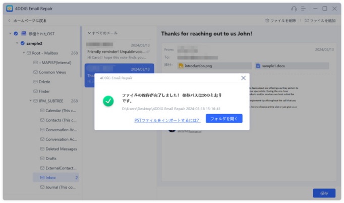 修復されたOSTファイルを保存