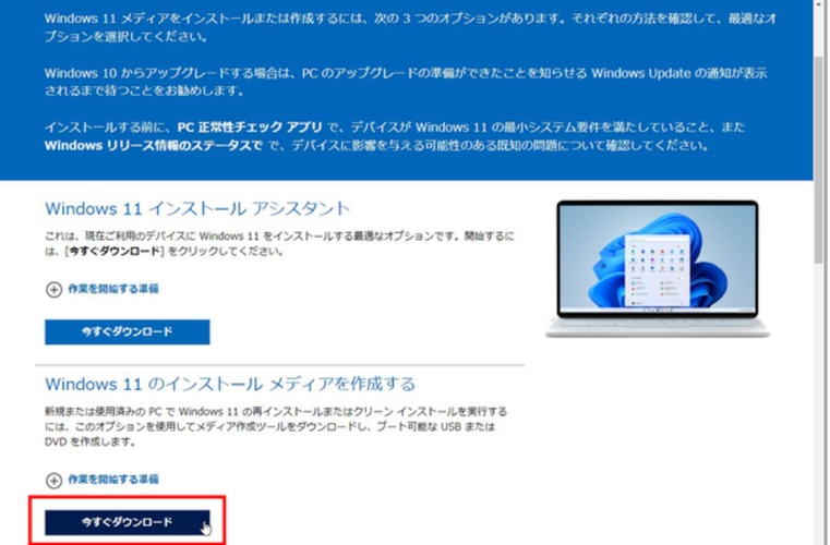 Microsoft公式サイトからメディア作成ツールをダウンロードしてください。