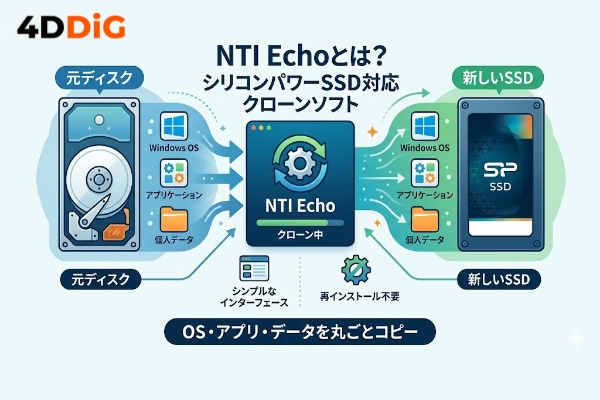 NTI Echoとは、主にSSDやHDDのデータを丸ごとコピーできるクローンソフトで、特にシリコンパワーSSDに対応したツールとして知られています。OSやアプリケーション、個人データを含めてそのまま別のドライブへ移行できるため、再インストールの手間を省きたいユーザーに適しています。
