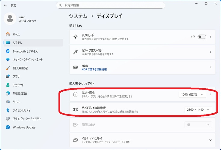 WQHD(2560×1440)の場合、フルHD(1920×1080)に変更を検討