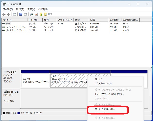Windows標準機能でCドライブを分割してDドライブを作成する方法