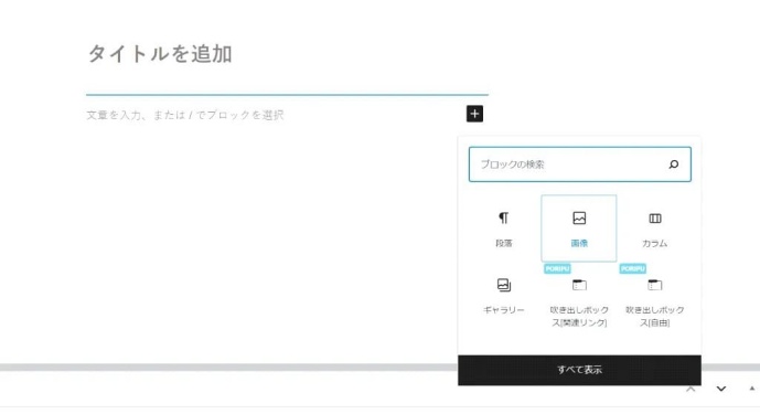 投稿画面にある「ブロックの追加」から「画像」を選択