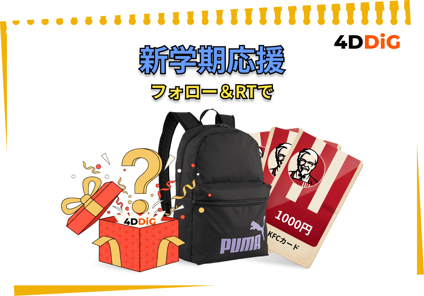 • 4.当選者にはXのDMでご連絡しますので、必ずXアカウント(@4DDiG_Japan)をフォローしてください。